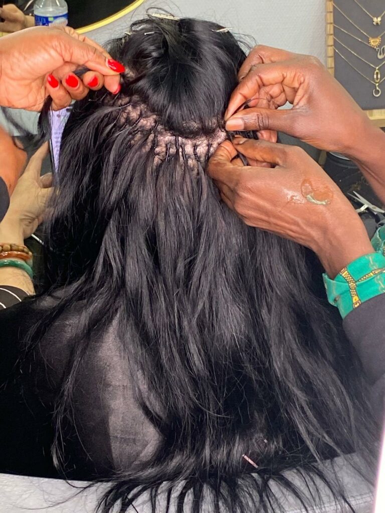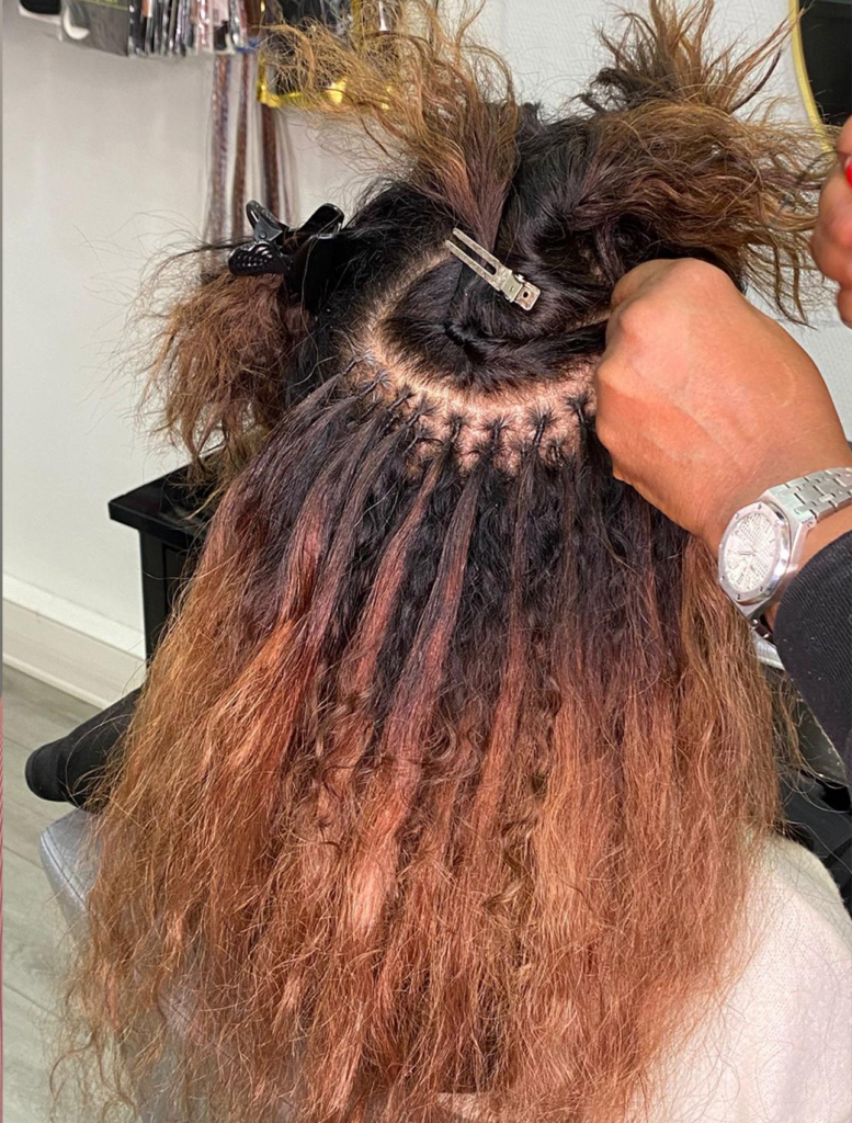 Selon la technique choisie, les cheveux peuvent être cousus, collés ou intégrés à votre mèche naturelle.